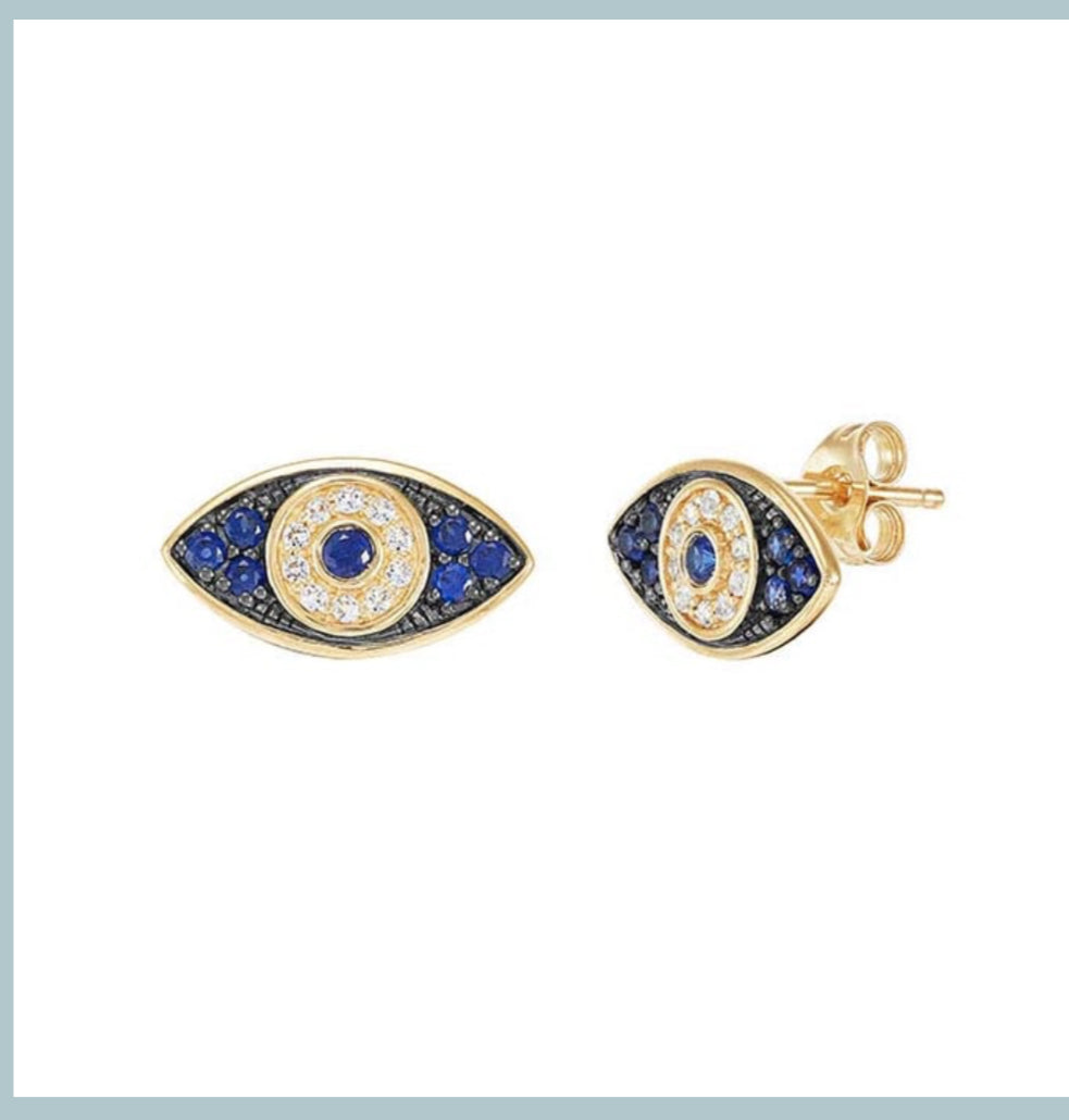 10K Yellow Gold Lab-Grown Sapphire-Set Evil Eye Post Earrings