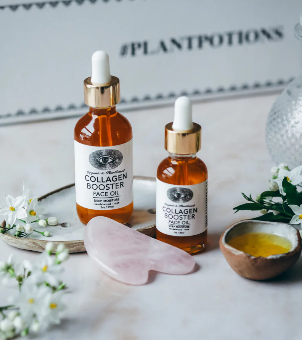 Our Collagen Booster Face Oil is a high-potency blend of antioxidant-rich botanicals and adaptogenic herbs, thoughtfully crafted to nourish and support skin’s natural radiance. Featuring He Shou Wu and Gynostemma—herbs revered in traditional herbalism for their balancing properties—alongside Mangosteen peel, Rose, Calendula, and Comfrey, this formula helps visibly soften, replenish, and revitalize.*