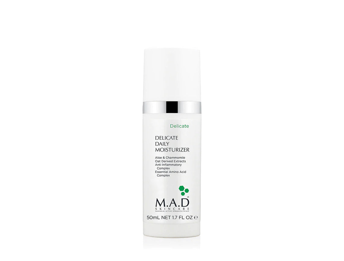 A lightweight moisturizer designed to minimize irritations and provide much needed moisture for healthy looking skin. Delicate Daily Moisturizer contains an important blend of botanicals and extracts making your skin healthy and looking its best. Chamomile, Licorice and Aloe Vera work together to soothe and hydrate your skin leaving it quenched but not greasy.