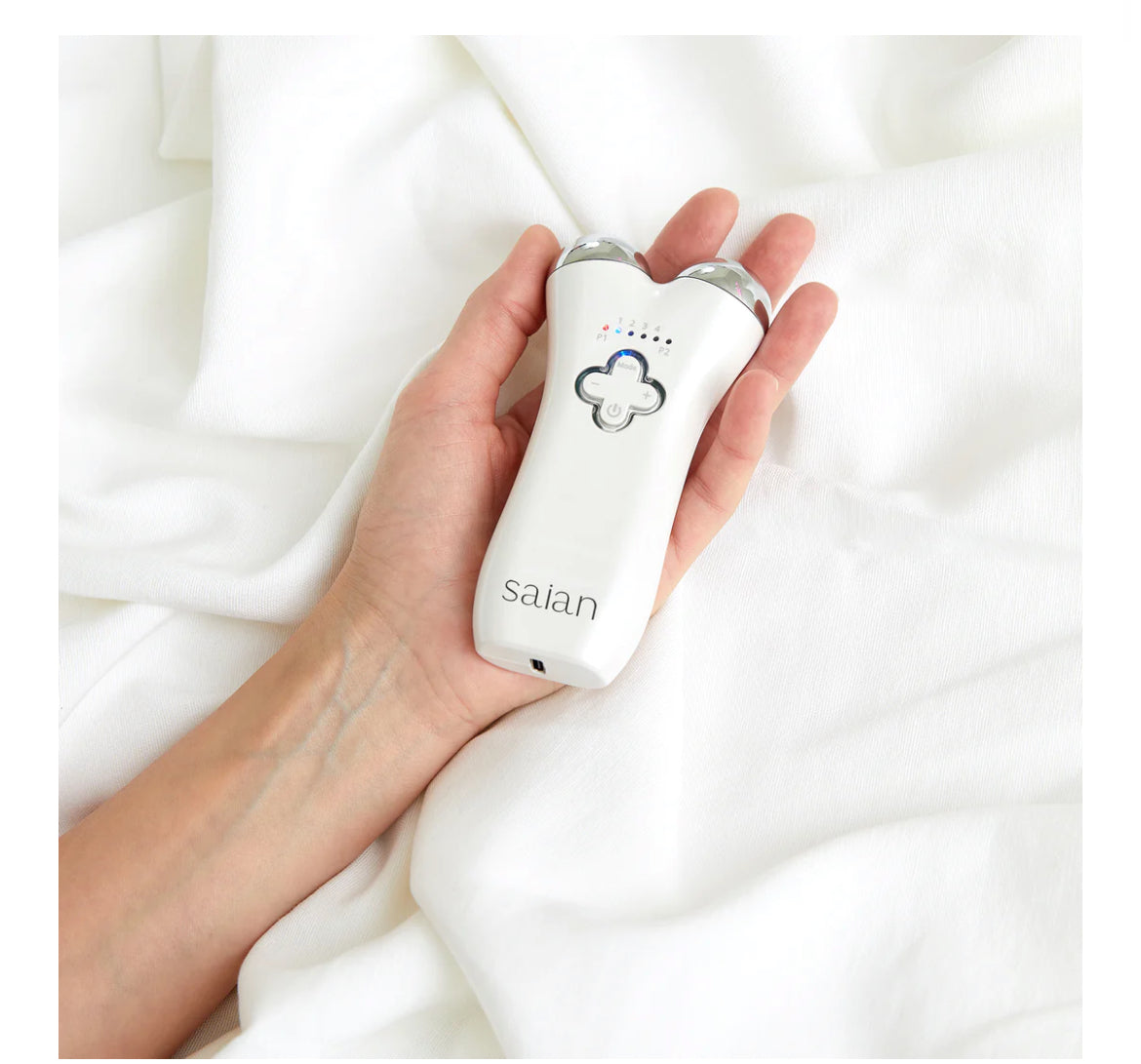 Saian FaceFyt is a unique Microcurrent device for professional and home esthetic use. When used with conductive gel, FaceFyt treats the face and neck to help reduce and eliminate fine lines and wrinkles. It increases the penetration of anti-aging and moisturizing products and diminishes the visible signs of aging.