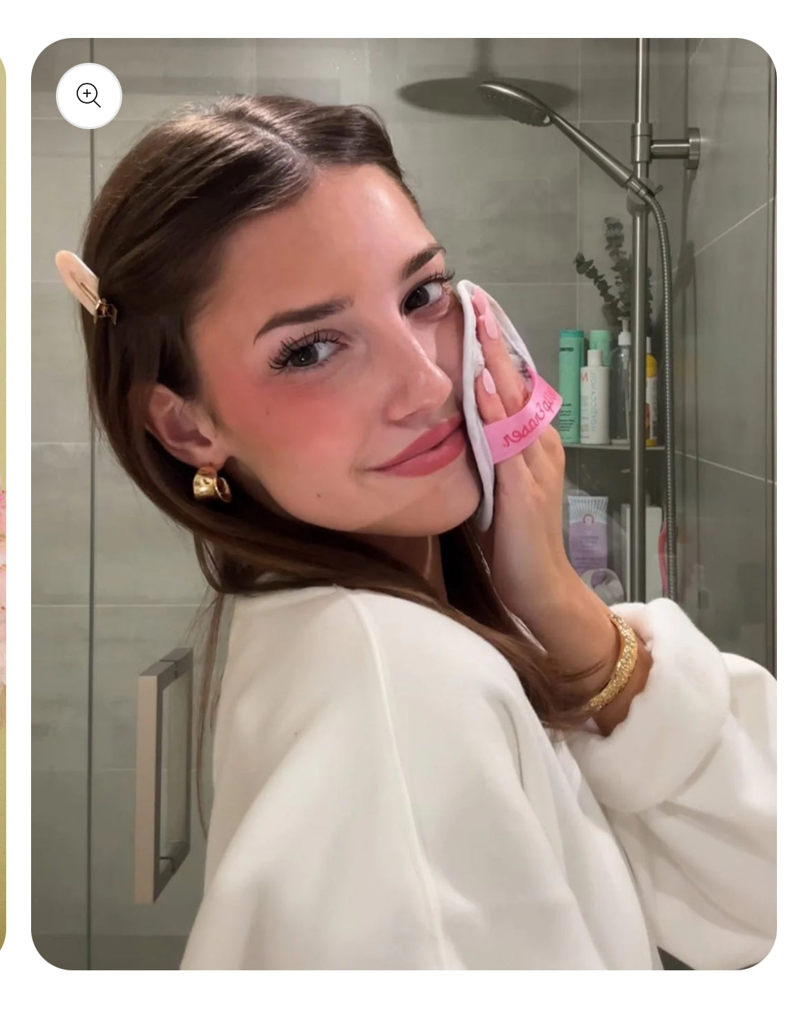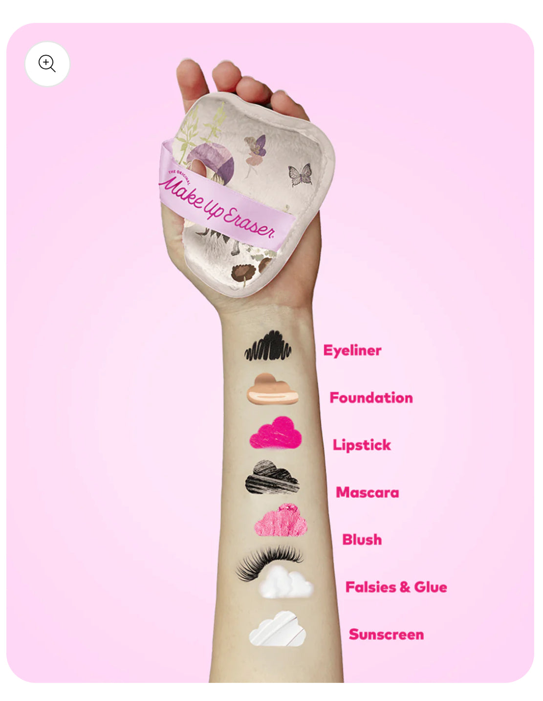 Erase all makeup with JUST WATER™ including waterproof. Our patented, water-activated, cloud-soft fibers gently & easily remove all makeup & sunscreen from pores. 2 in 1 benefit: one side erases makeup & one side exfoliates skin.
