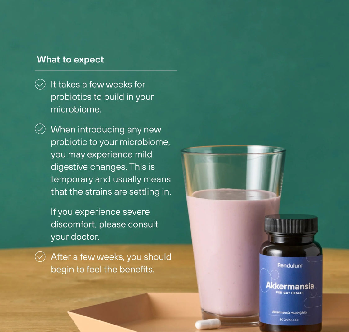 Pendulum Akkermansia has been linked to helping with improved gut health.* Pensulum Akkermansia contains one strain. Akkermansia muciniphia.